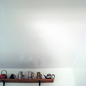 This reminds me of a show my son used to watch called “The Animal Shelf” where all the toys came to life and moved around during the day but at night they settled back on the shelf. All your coffee pots and kettles look very content up there. Very nice shot.