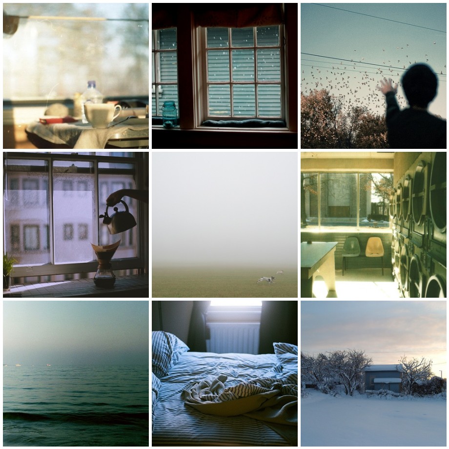1. untitled, 2. it snowed yesterday, 3. untitled, 4. morning light, 5. untitled, 6. wednesday**, 7. summertime beach walk, 8. untitled, 9. untitled