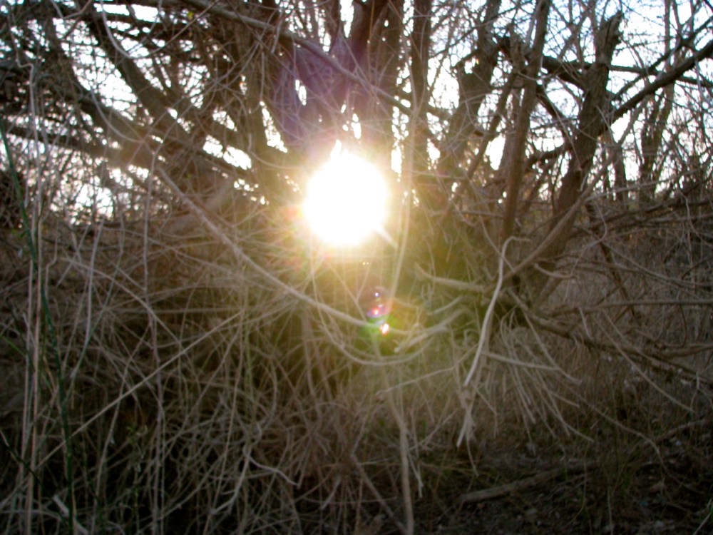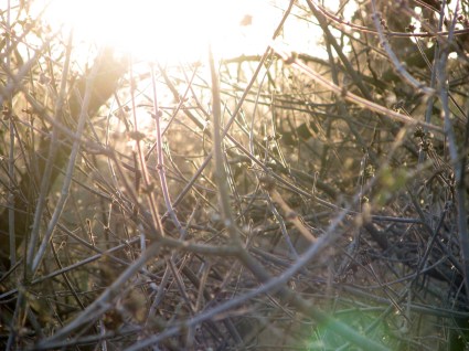 these shots come from a river walk a few weeks ago, one in which i was again disappointed — caught up in “expectations” as tara via rachel smartly point out in the comments here — because by the time we arrived, the sun was already dropping down. i had hoped to capture some birds, of course, and a little more of the colorful splendor of day’s end. but alas, it was too late. so i didn’t end up with anything remotely colorful; however, i did end up shooting through the bare thicket to get these, and i rather like them.